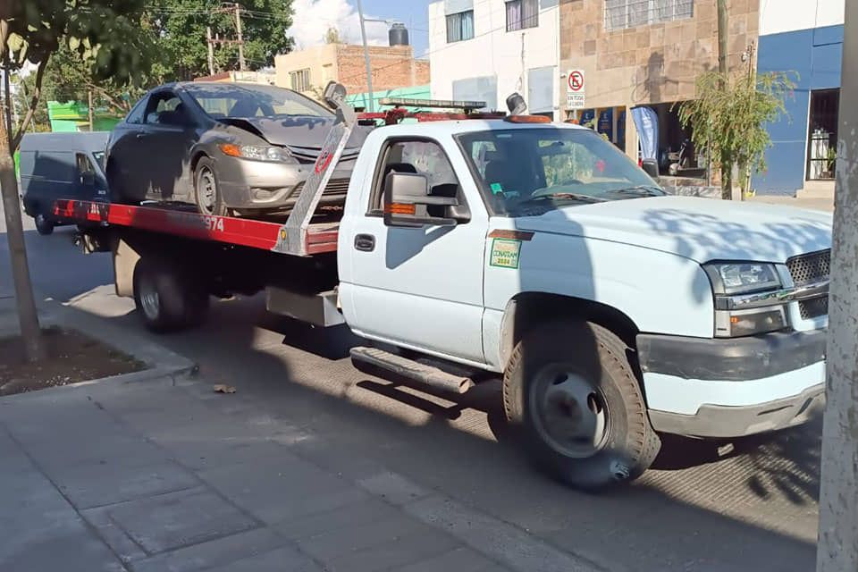 Manejamos grúas de plataforma para autos chocados o con daños severos y grúas de arrastre para fallas mecánicas menores.